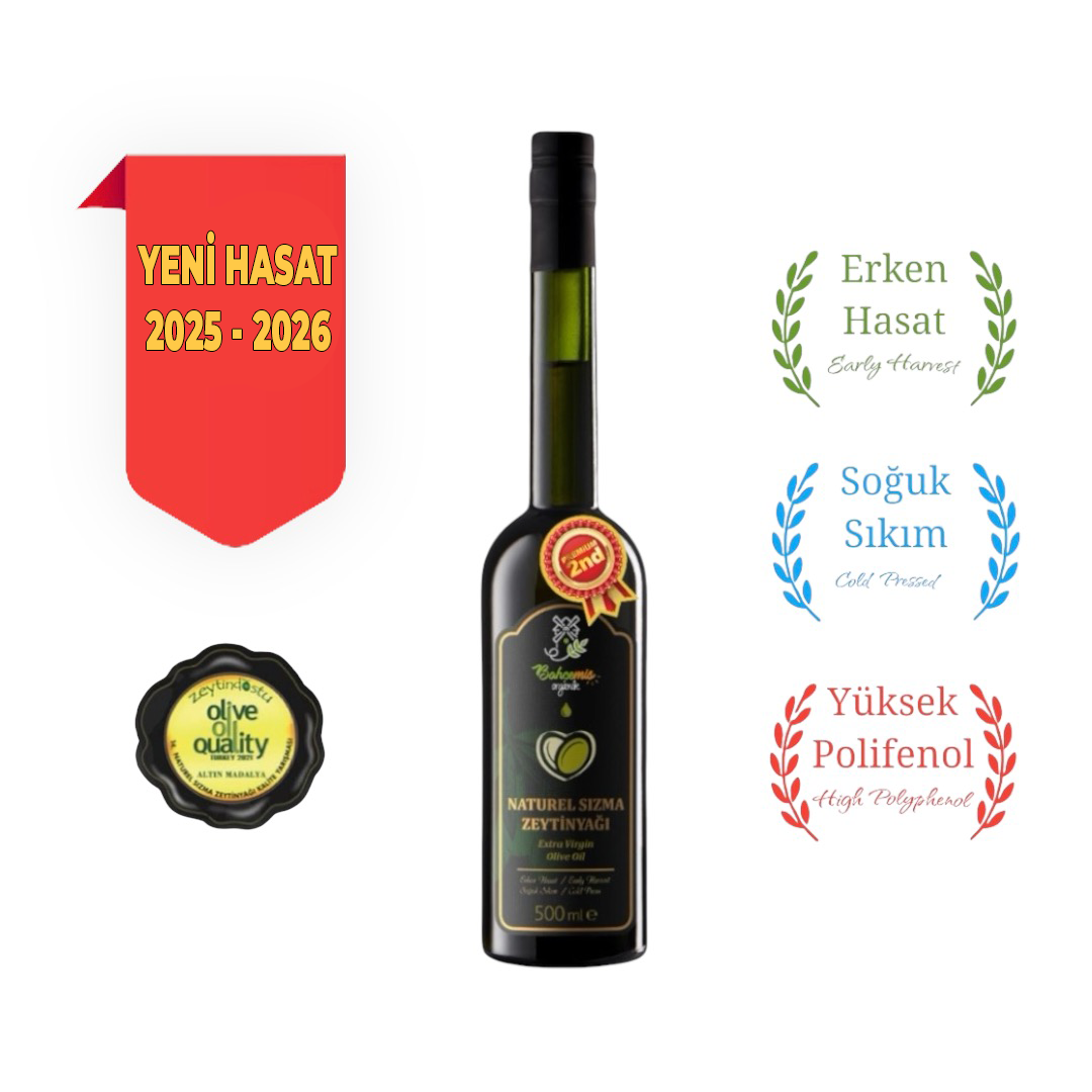 0,2 Asit, 600 Polifenol, 2023/2024 yılı Yeni Hasat Aydın Yöresi Memecik türü zeytinliklerimizden elde edilmiş kendi üretimimiz olan Naturel Sızma, Erken Hasat, Soğuk Sıkım zeytinyağlarımız bir tık'la kapınızda.