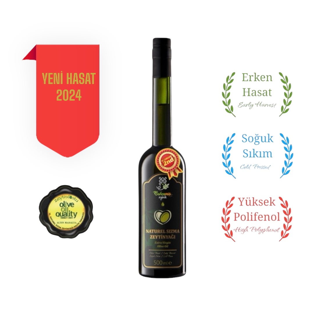 Dağ yamaçlarında ve düz alanlarda olmak üzere toplamda 200 dönüm arazide yer alan Zeytinliklerimizden Ekim başı Erken Hasat edilen Memecik zeytinlerimiz hiç bekletilmeden anında Soğuk Sıkım yapılarak içeriğinde bulunan Polifenol 150+ olarak elde edilmiştir.
